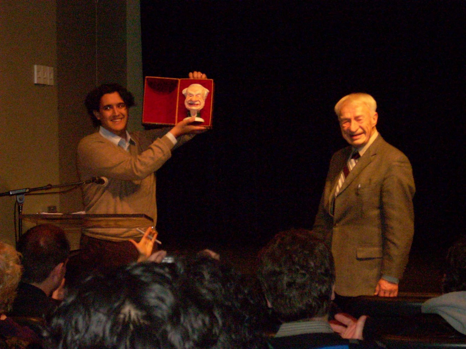 Several presentations were made to Kaj, including a card from the students and faculty of Sheridan College's animation program, which featured a caricature of Kaj by Peter Emslie. Another presentation was made by student Allesandro Piedimonte of a sculpture of Kaj that he'd made.